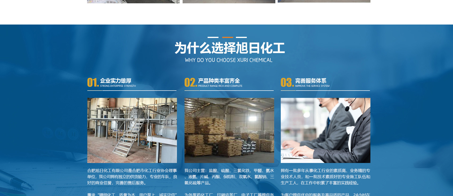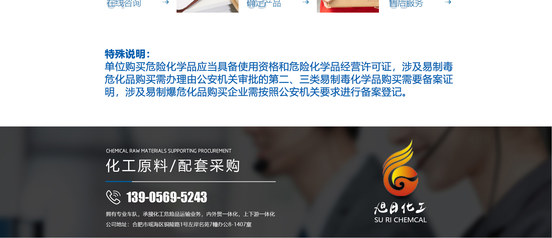 合肥旭日化工有限公司是合肥市化工行業(yè)協(xié)會(huì)理事單位,該公司擁有獨(dú)立的供貨能力,專(zhuān)業(yè)的車(chē)隊(duì),良好的商業(yè)信譽(yù),完善的售后服務(wù)。秉承“精細(xì)化工、質(zhì)量為本、用戶(hù)至上、誠(chéng)實(shí)守信”的企業(yè)理念。從事各類(lèi)化工溶劑和原料的國(guó)內(nèi)貿(mào)易;為各醫(yī)1藥化工廠(chǎng)、印刷皮革廠(chǎng)、電子工廠(chǎng)等提供各種化工原料配套采購(gòu)。目前,公司正朝著以貿(mào)易為基礎(chǔ)、以實(shí)業(yè)為依托,全球采購(gòu)、全國(guó)銷(xiāo)售,內(nèi)外貿(mào)一體化,上下游一體化,具有綜合增值能力和復(fù)合競(jìng)爭(zhēng)能力化工原料供應(yīng)商。本公司主要經(jīng)營(yíng)的產(chǎn)品有:鹽酸、硫酸、三氯化鐵、甲醛、氨水、液氨、片堿等。合肥旭日化工有限公司為客戶(hù)提供優(yōu)良的服務(wù)及高品質(zhì)的產(chǎn)品,本公司經(jīng)銷(xiāo)的各種產(chǎn)品不僅在安徽地區(qū)深受用戶(hù)好評(píng),而且具有很高的市場(chǎng)占有率,產(chǎn)品行銷(xiāo)全國(guó)各地區(qū)。